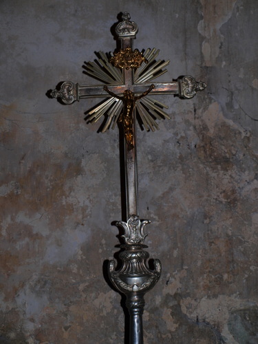 Les bâtons et croix de procession étaient portés en hauteur lors de marches de procession ou de pèlerinages. Ce sont des objets cultuels qui représentent, la plupart du temps, des saints.
