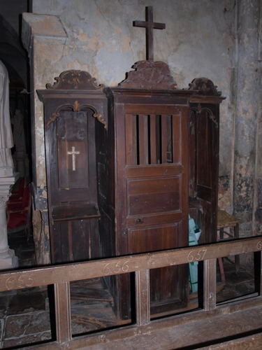 Confessionnal: inscrit à l'inventaire général du patrimoine mobilier, bois taillé, XVIIIe siècle : Le confessionnal a été très fréquenté lors des siècles précédent, et il a peu à peu perdu de son utilité, dans l'église de Landreville, pour n'être aujourd'hui qu'ornemental.