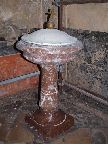 Fonts baptismaux : inscrit à l'inventaire général du patrimoine mobilier. C'est une cuve à deux compartiments en marbre veiné rouge. Cet objet daterait soit de la deuxième moitié du XVIIIe siècle, ou du début du XIXe siècle.