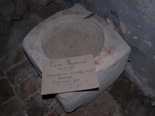 Cuve baptismale : inscrit à l'inventaire général du patrimoine mobilier. Cette cuve en calcaire a été découverte lors de travaux dans l'église, sous le dallage de la sacristie, en 1978. Elle daterait du XIe siècle.